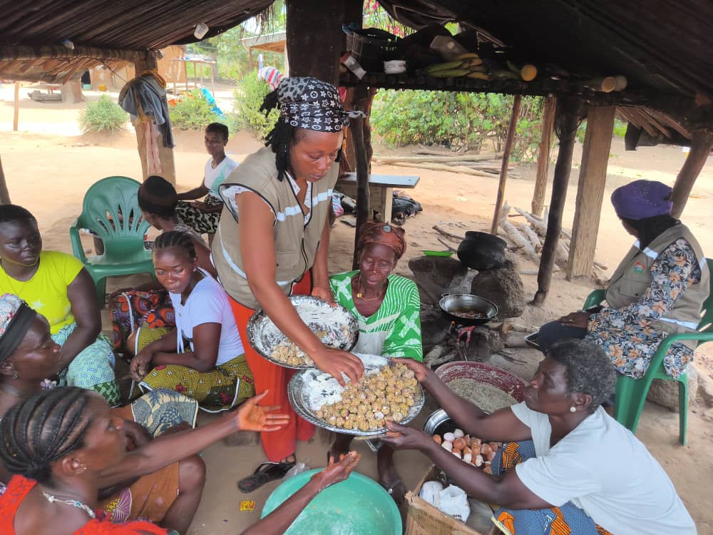 Puis, suivait une démonstration pratique dans la cuisine où les femmes découpaient les ingrédients sous le regard bienveillant des formateurs qui se soldait par une partie de dégustation des boulettes, klaklo et aloco faites à base de la pomme de cajou.